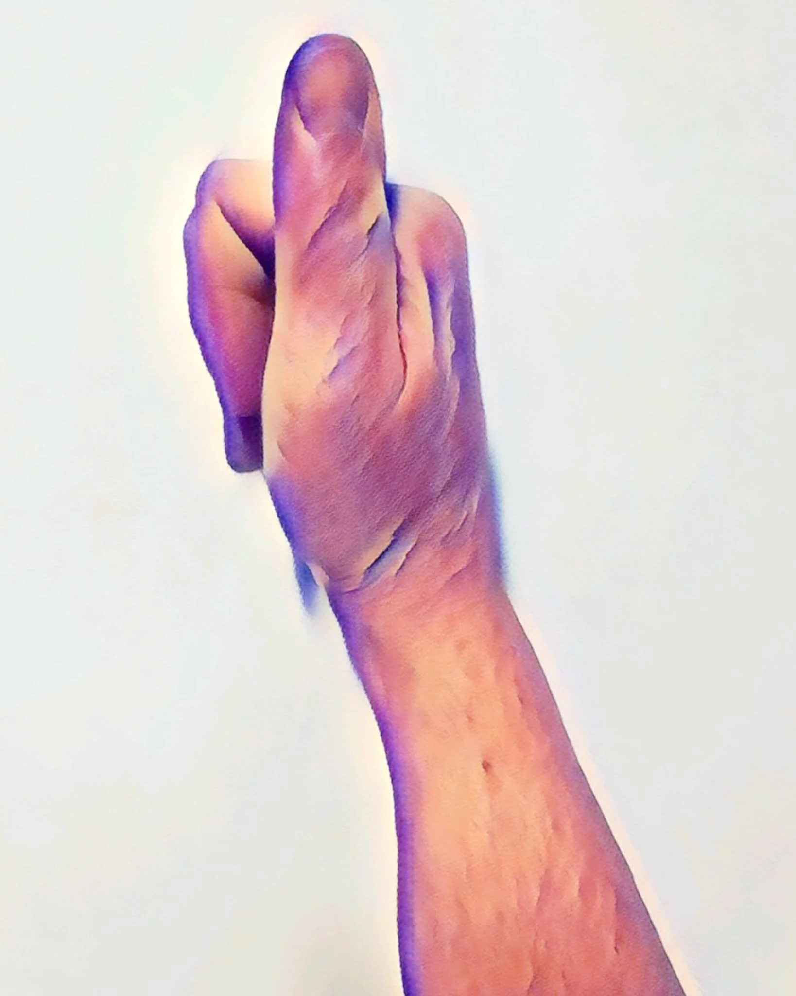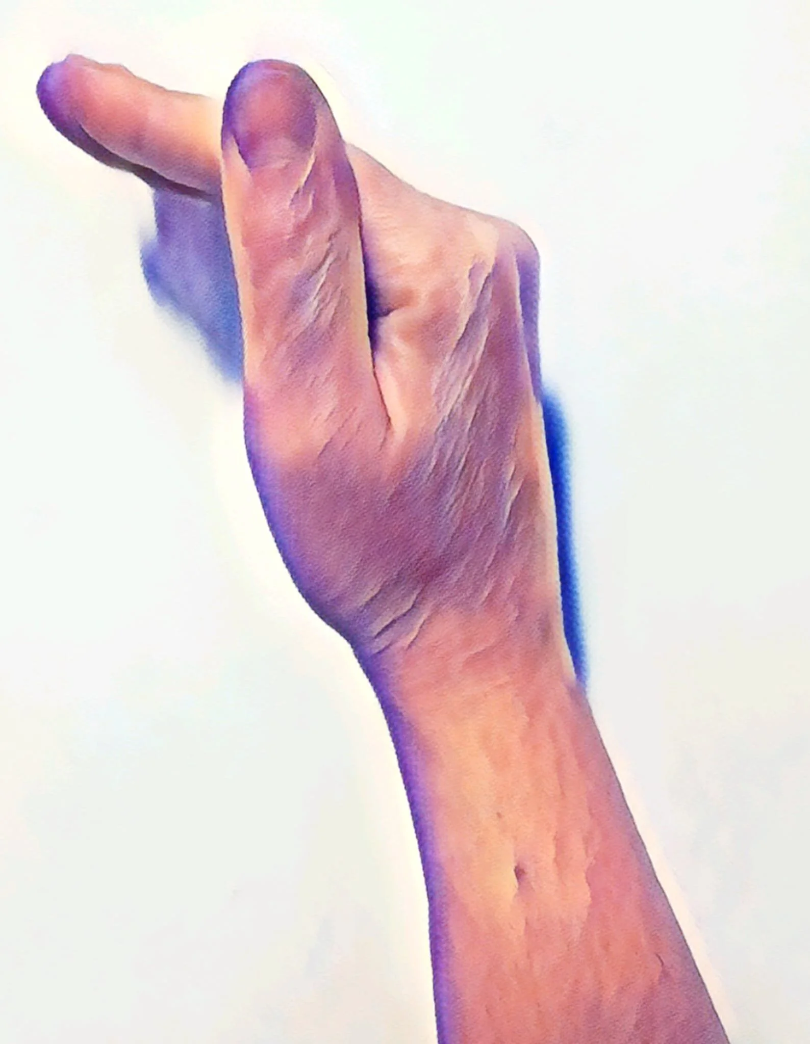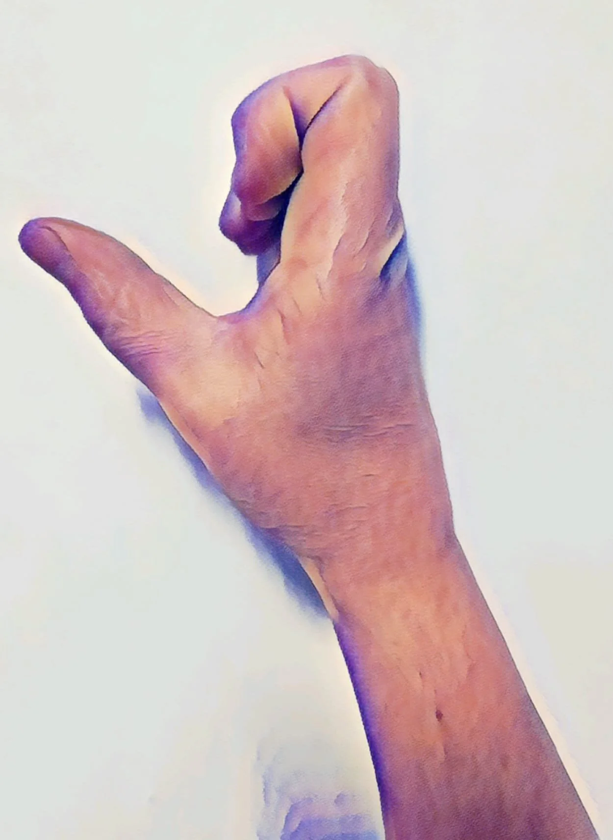 Keeping your knuckles straight, bend your middle and end joints to create a hook position with your fingers. Your finger tips should curl toward your palm while your knuckles remain extended.