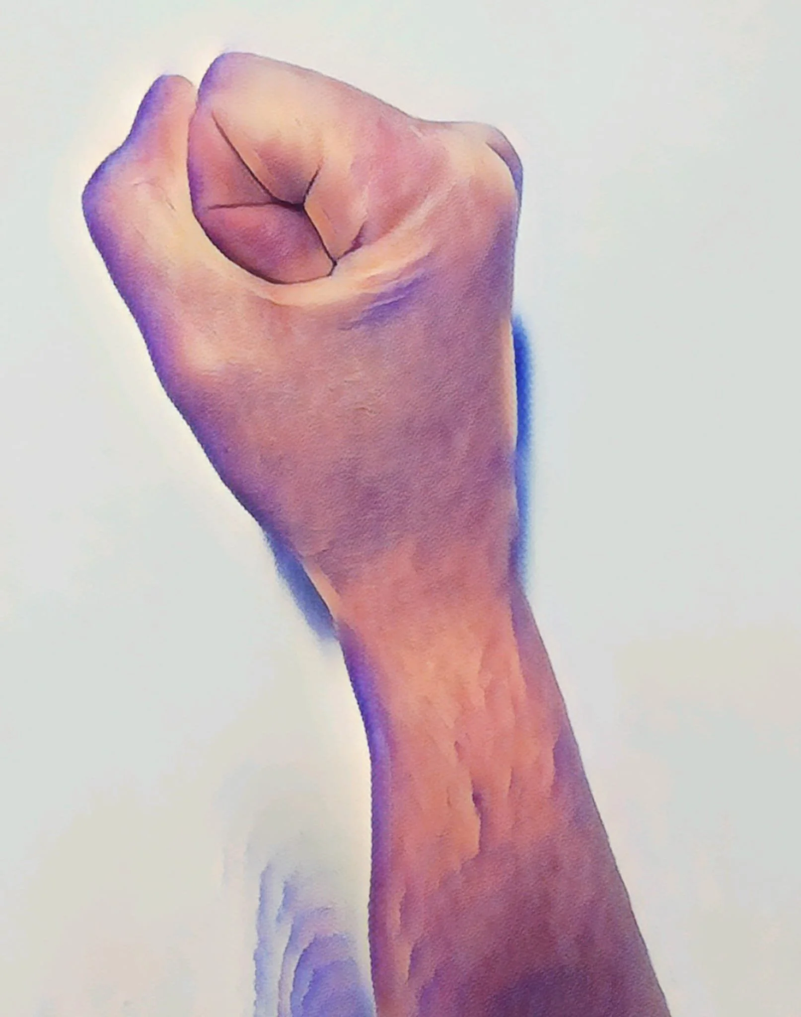 Keep your finger tip joints straight while bending at both your knuckles and middle joints. This creates a fist with straight finger tips.